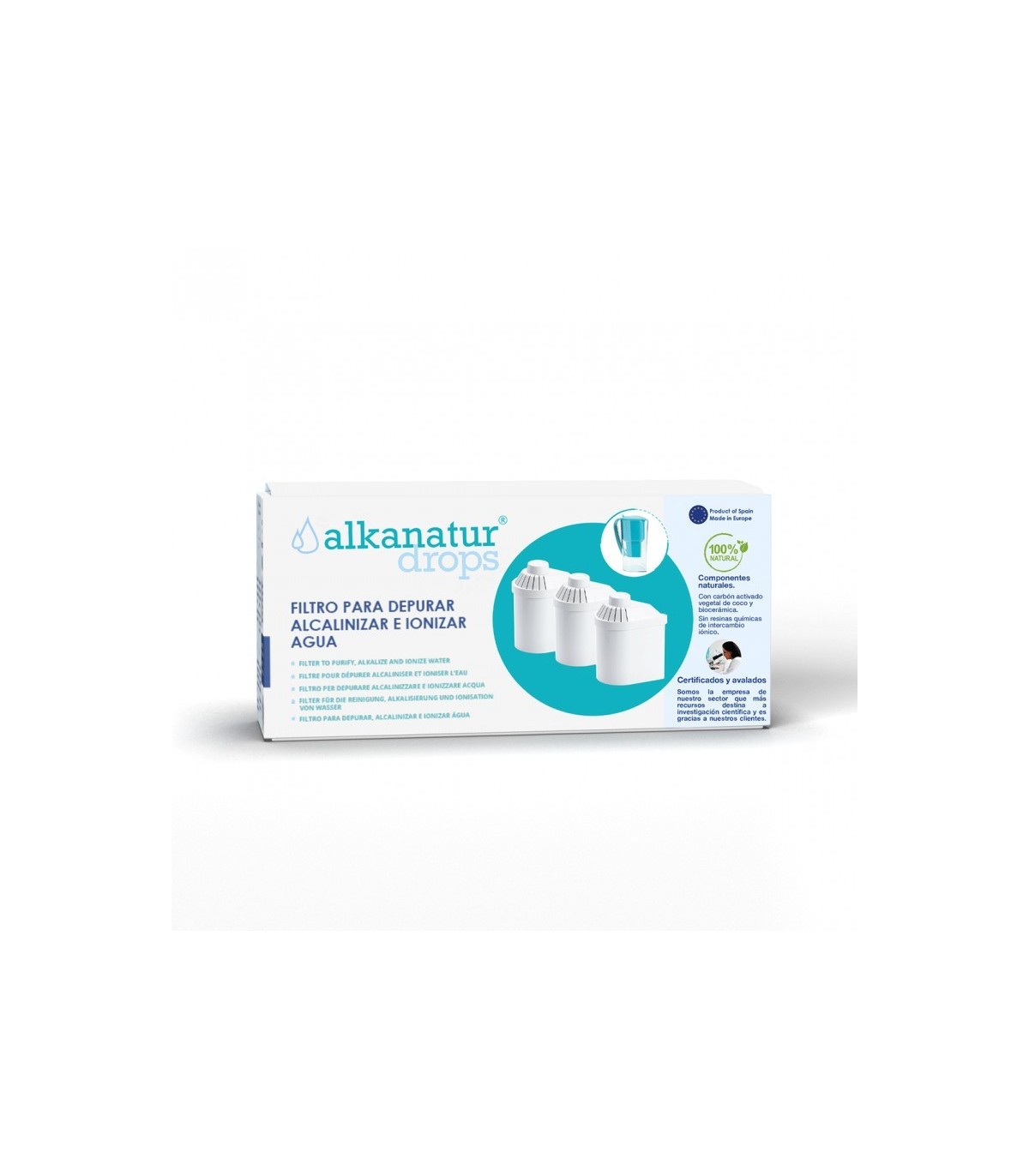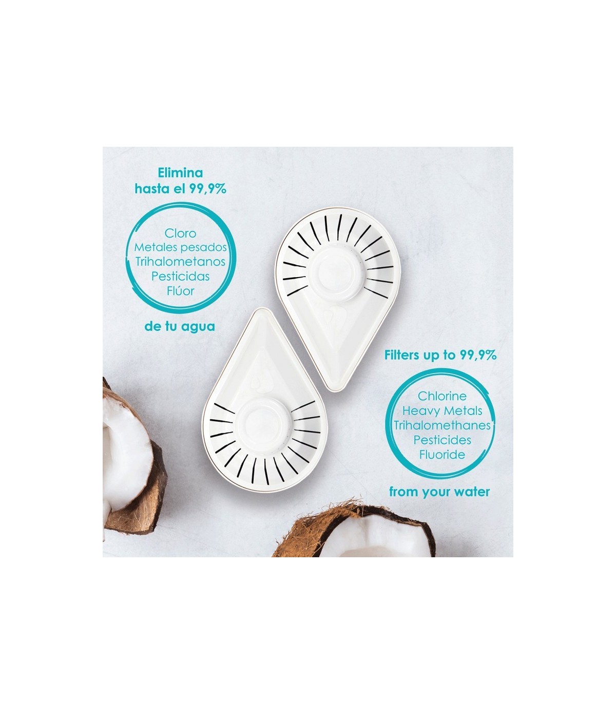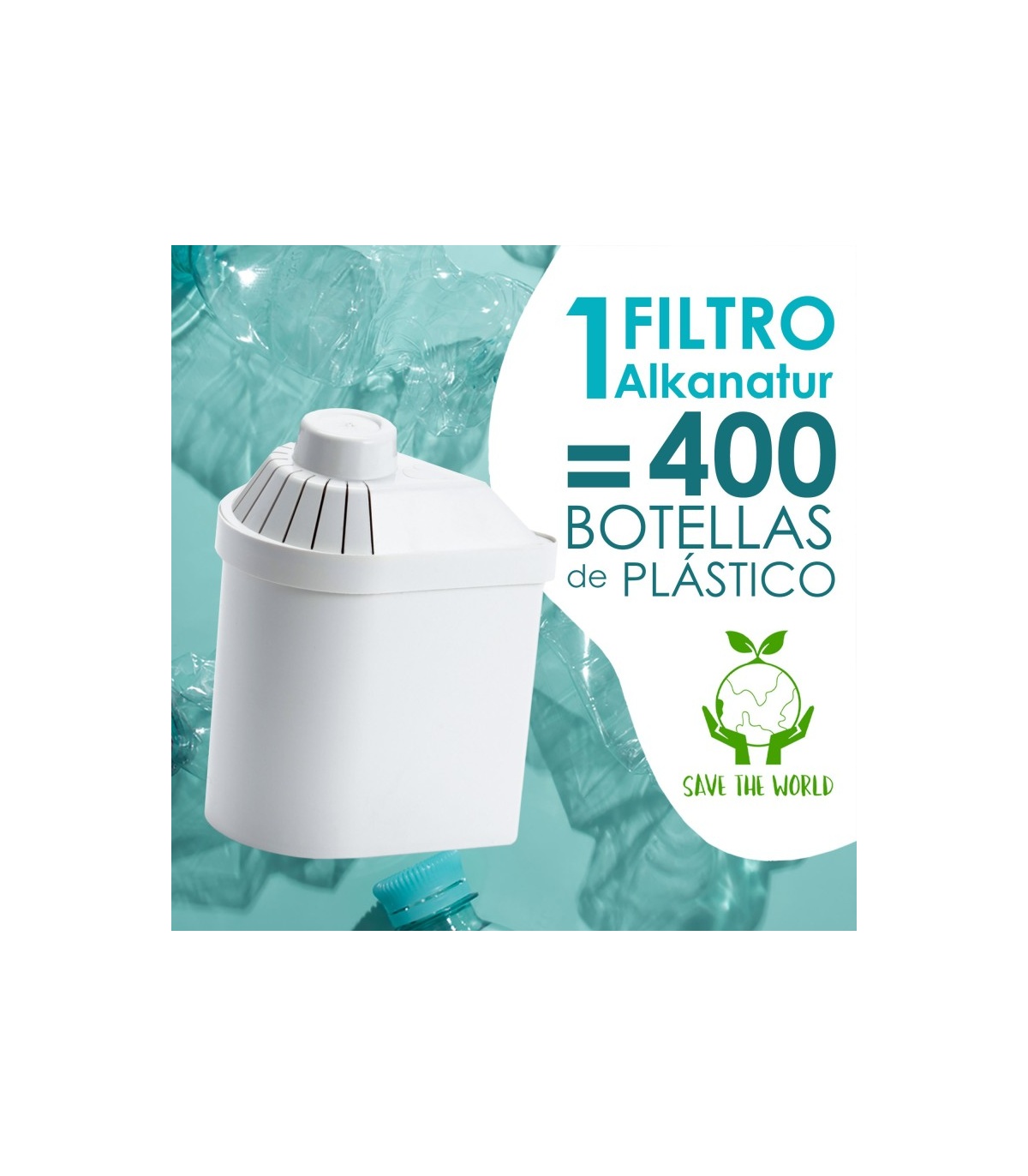La tecnología Alkamicronized selective® nos permite filtrar durante 400 litros (1 filtro) un agua libre de cloro, fluor, pesticidas, nitratos, metales pesados (plomo, mercurio, cadmio, cobre, aluminio y arsénico) y trihalometanos hasta un 99%.