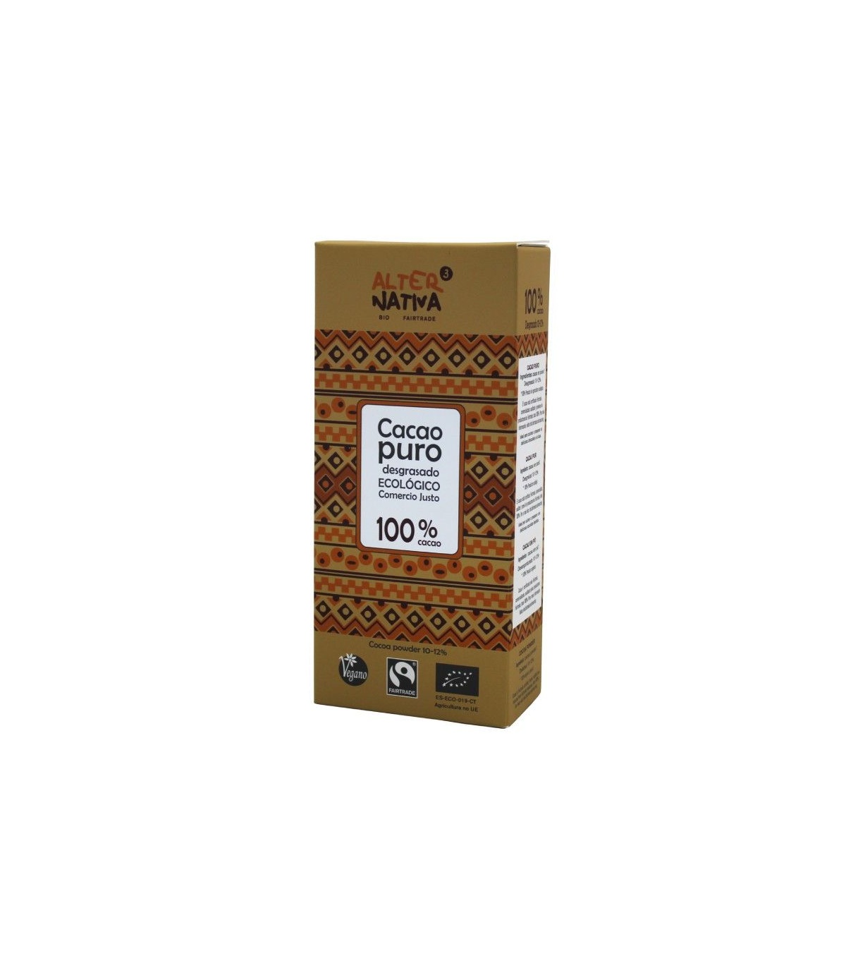 Cacao con menos grasa, ideal para dietas bajas en grasa. Adecuado para vegetarianos y veganos. No contiene colorantes ni conservantes.