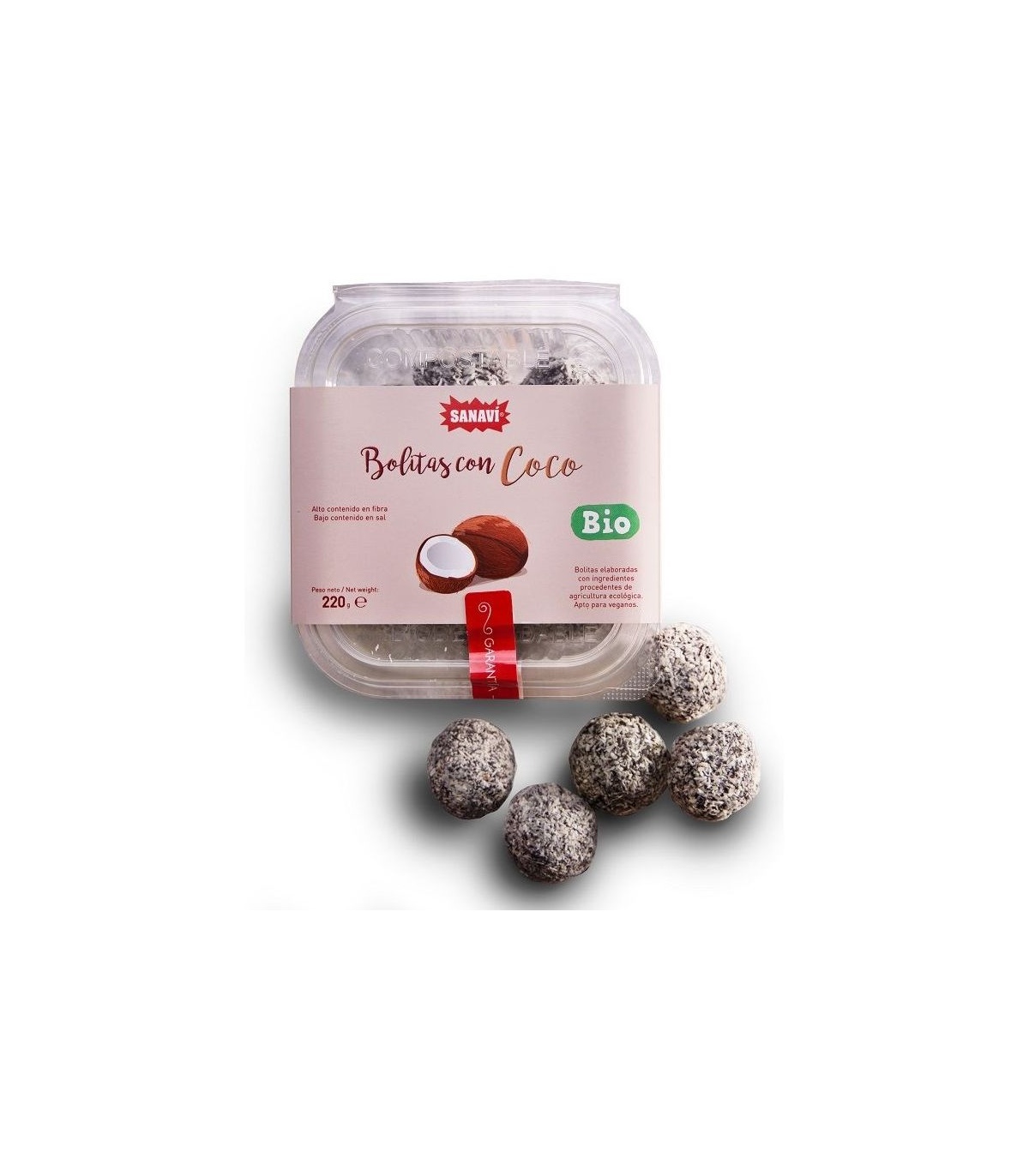 Bolitas elaboradas con ingredientes procedentes de la agricultura ecológica. Apto para veganos.