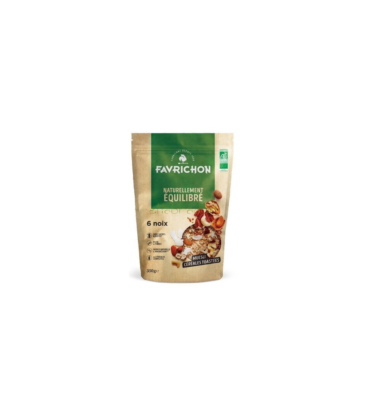 Cereales integrales* (copos de avena* 19%, flakes de trigo* 16,5copos de centeno* tostados 16%, copos de cebada * tostados 12%, copos de trigo* tostados 12%), almendras* integrales 4%, avellanas* integrales 3,5%, nueces de Amazon* 3%, coco*, marañón* 3%, semillas de trigo sarraceno* tostadas, nueces de pecán* 2,5%, nueces* 2,5%. *Ingredientes provenientes de agricultura biológica.
