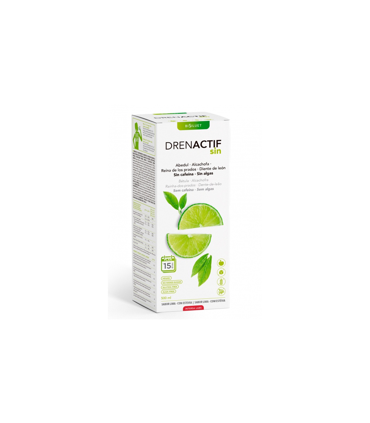 DRENACTIF SIN CAFEINA 500 ml.Ideal para las personas que no pueden tomar algas ni otros estimulantes.Mujeres en menopausia o con hipertiroidismo.Personas medicadas y muy delicadas.